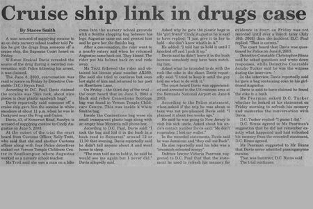 A man accused of supplying cocaine to an on duty nursery school teacher told Police he got the drugs from someone off a cruise ship the Supreme Court heard on Friday. 03 Cruise...